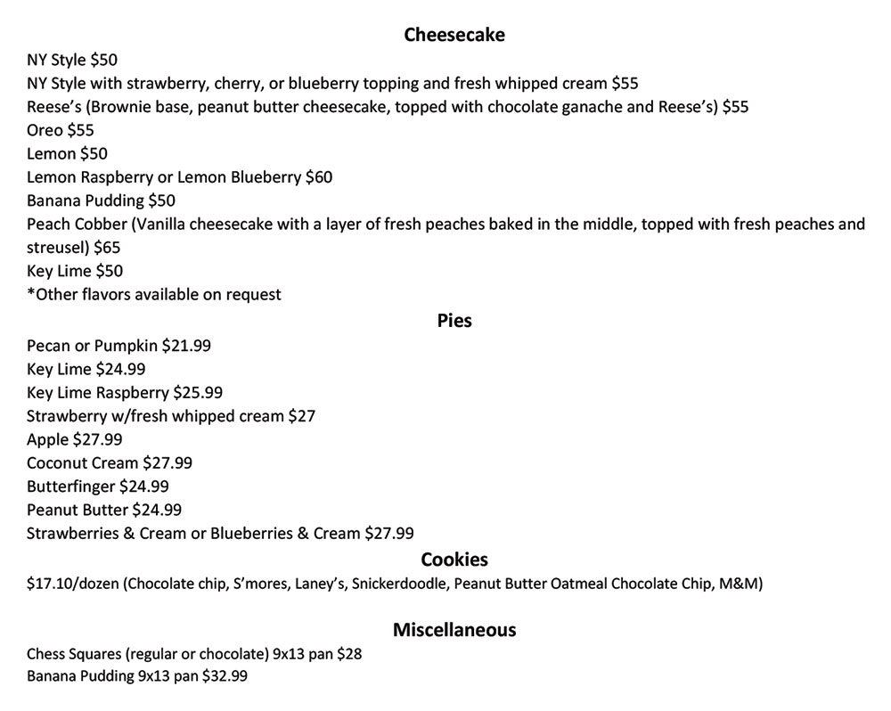Simply place your order, and we'll work with you to create a customized dessert experience that will impress your guests and leave a lasting impression. View our full Special Order Menu below to explore the delightful options available for your special event.