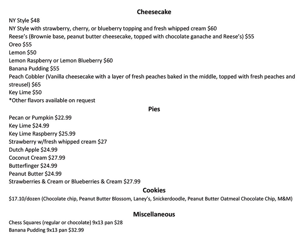 Simply place your order, and we'll work with you to create a customized dessert experience that will impress your guests and leave a lasting impression. View our full Special Order Menu below to explore the delightful options available for your special event.